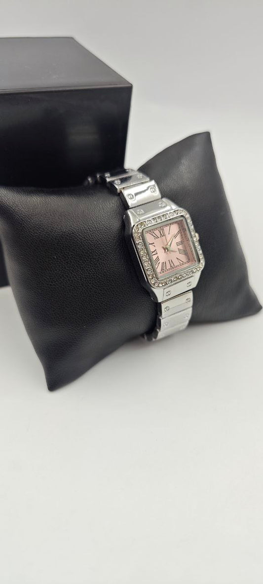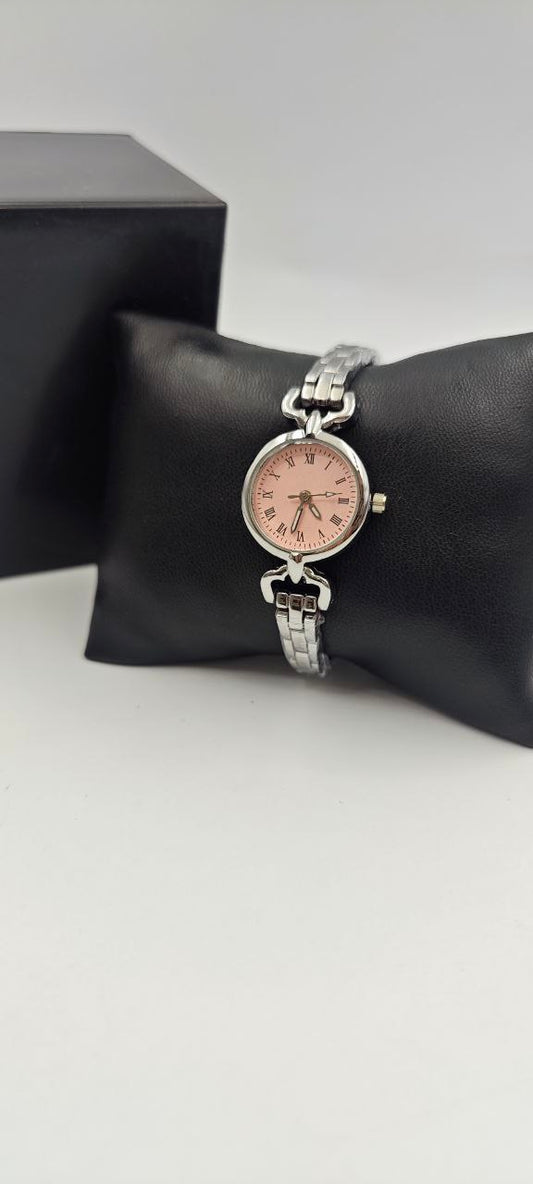 İNDİRİM 43%GÜMÜŞ RENK İÇİ PEMBE BAYAN SAATİ