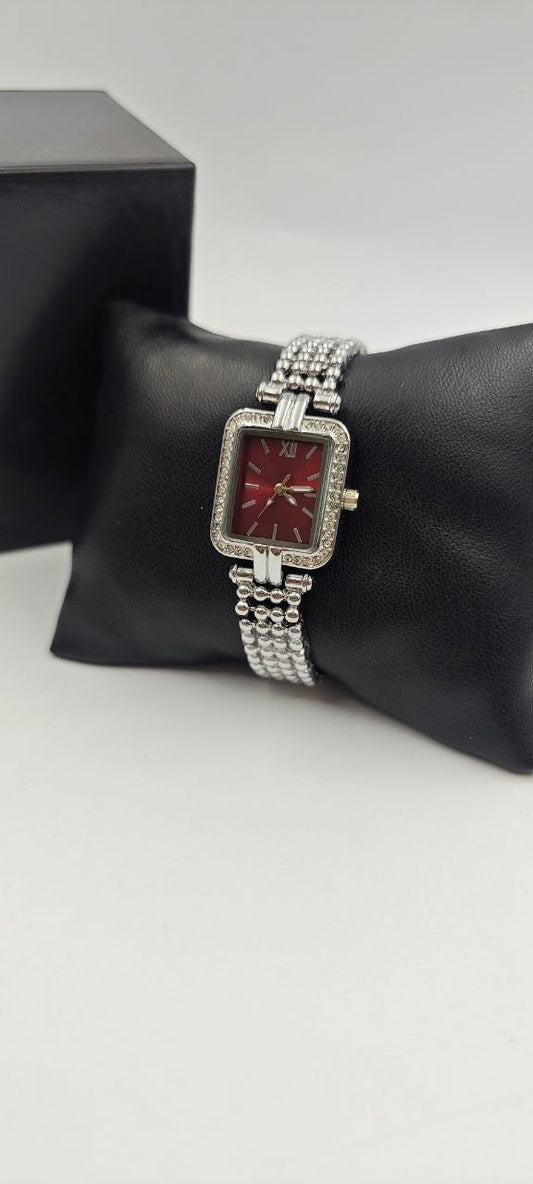 İNDİRİM 43%GÜMÜŞ RENK İÇİ KIRMIZI BAYAN SAATİ