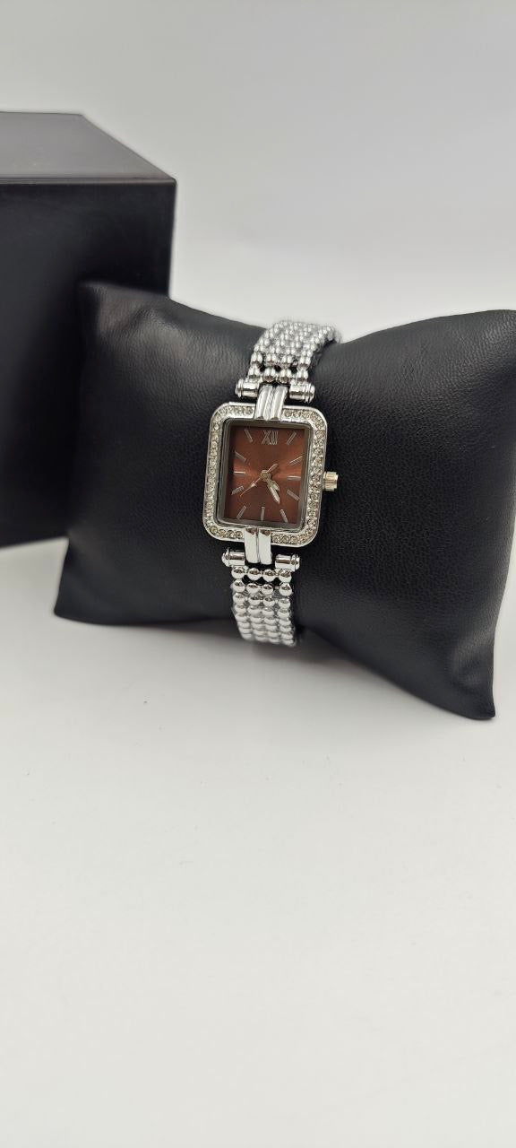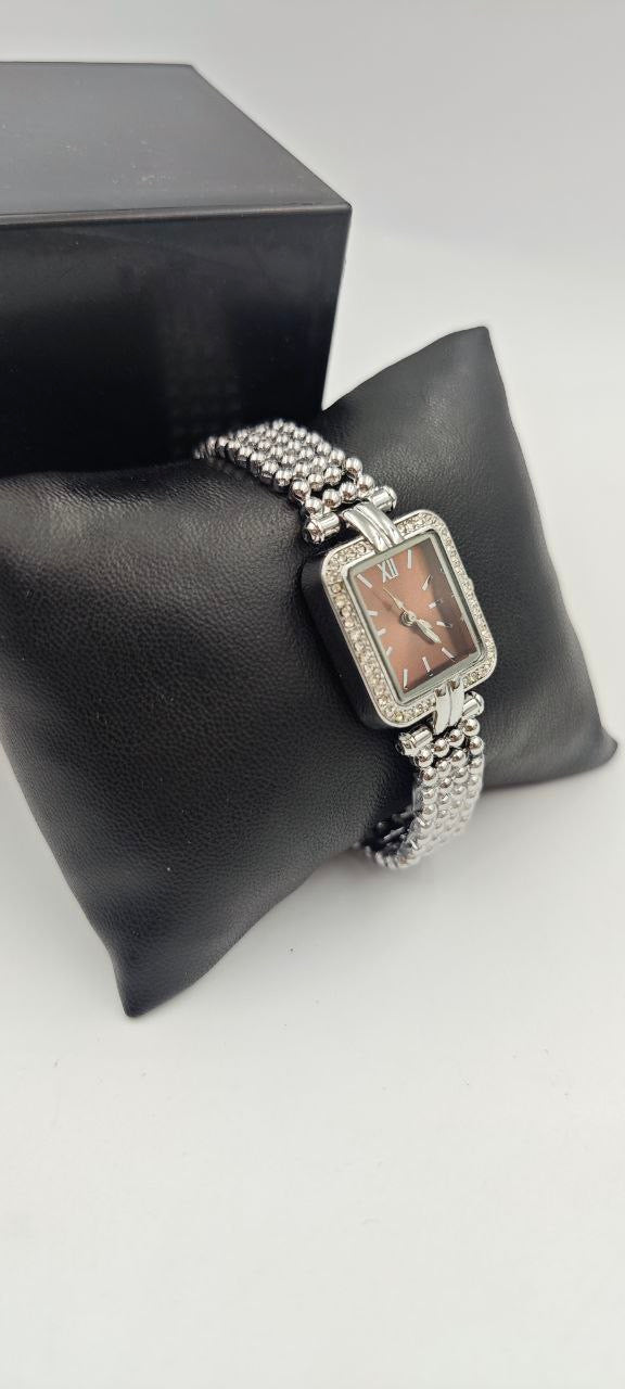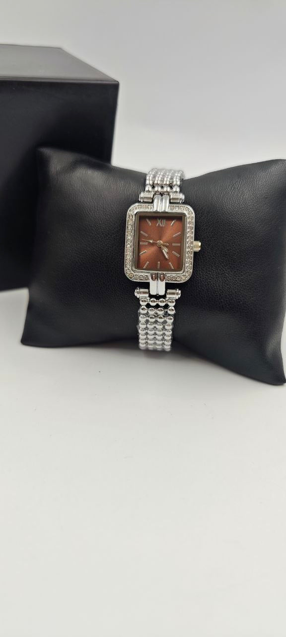 GÜMÜŞ RENK İÇİ TURUNCU BAYAN SAATİ